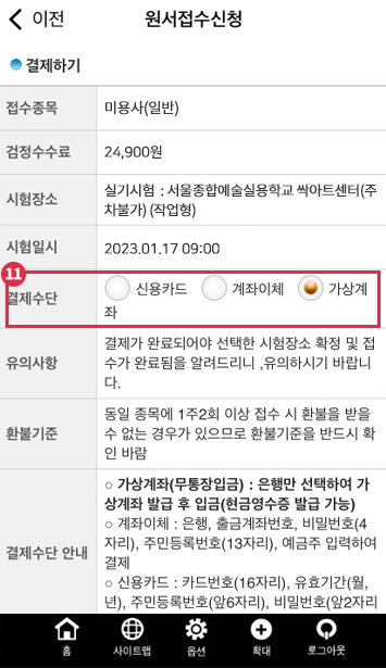 Tip. 결제는 무조건 무통장 입금으로하셔야 빠른 접수를 하실 수 있습니다.